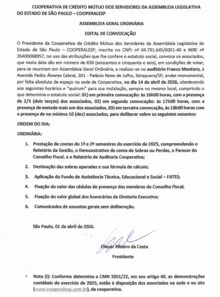 A Cooperalesp – Cooperativa de Crédito Mútuo dos Servidores da Assembleia Legislativa do Estado de São Paulo foi criada por um grupo de funcionários tendo como objetivo proporcionar assistência financeira aos seus associados. Os recursos da Cooperalesp provém da capitalização realizada pelos seus sócios.